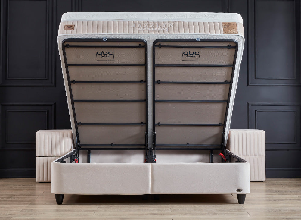 Integrierter Bettkasten mit Gasdruckfeder-Mechanismus für leichtes Öffnen
