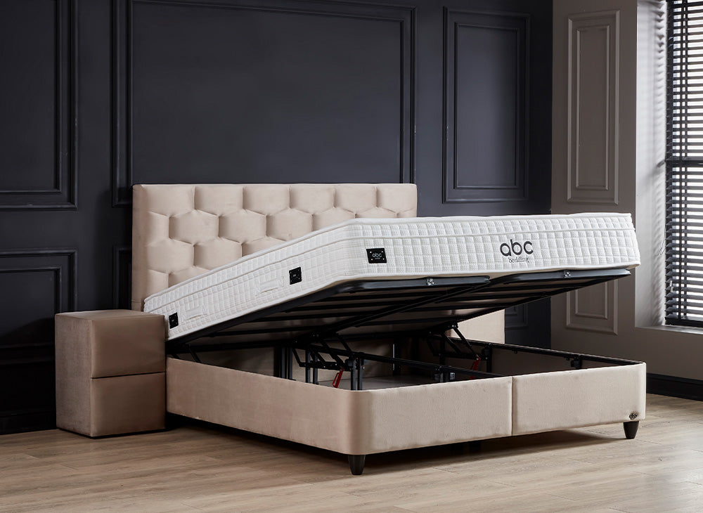 Integrierter Bettkasten mit Gasdruckfeder-Mechanismus für leichtes Öffnen